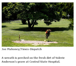 Now to the current unfolding tale of woe, and goodness knows what else that is week by week it seems, unfolding out of Virginia’s Central State Hospital. There have been a series of near damning articles in multiple minor and major newspapers in Virginia detailing the trial of failures it appears that resulted in the death of a woman named Valerie Anderson now buried on the campus of Central State Hospital since she died there.